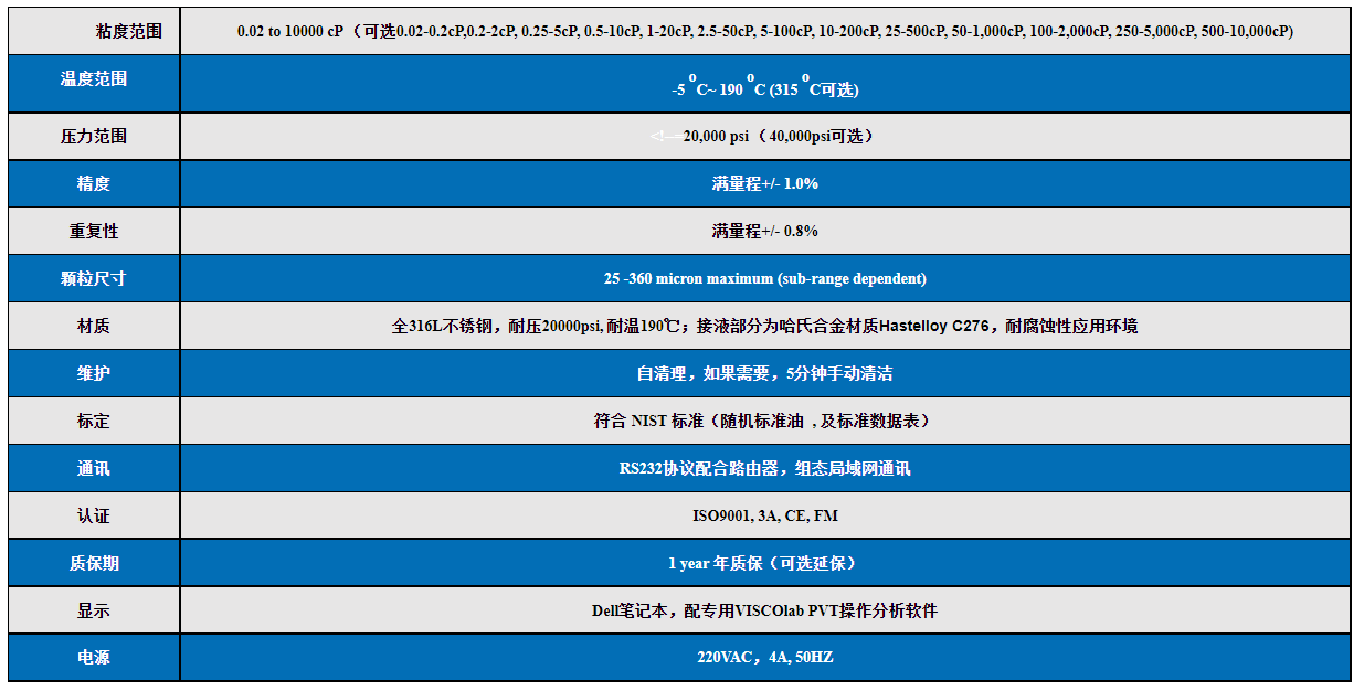 高壓粘度計(VISCOlab PVT)技術參數: