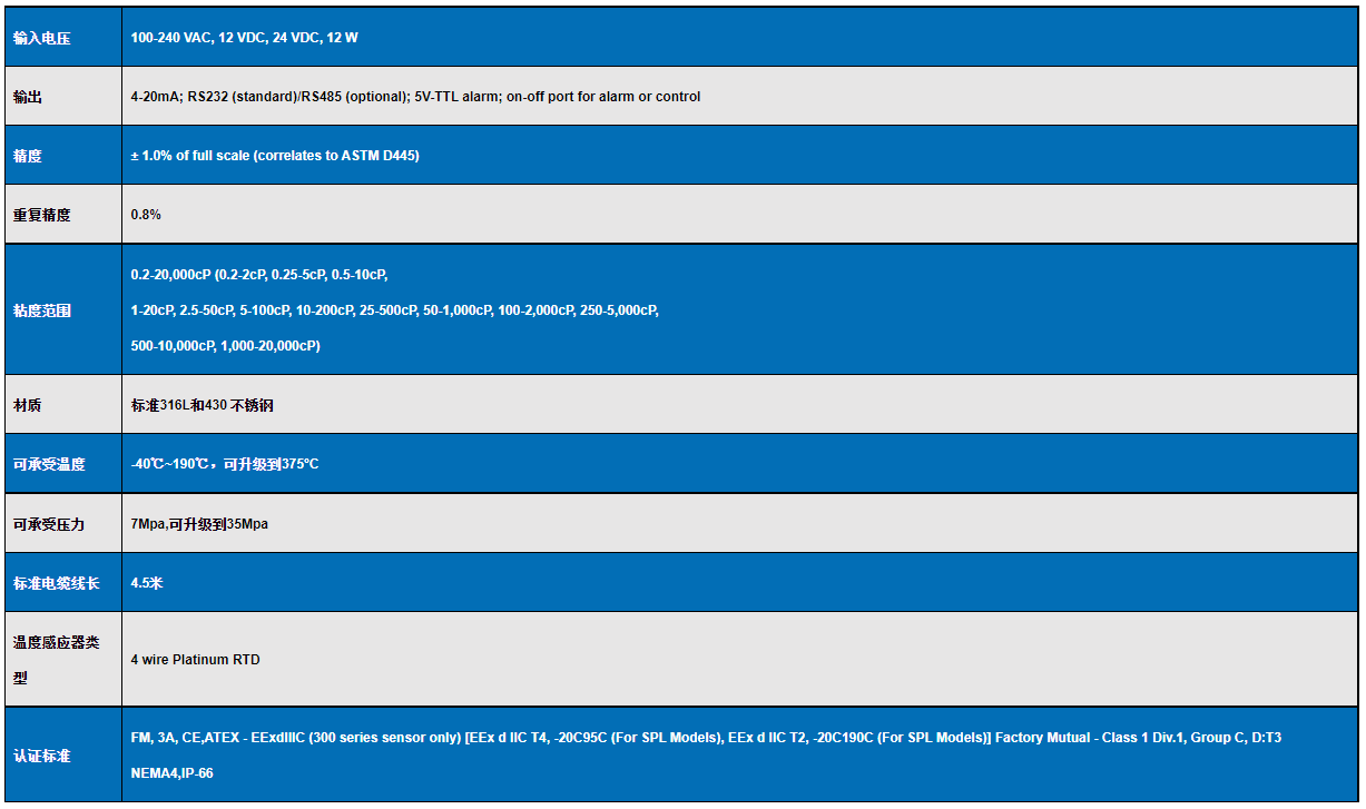 VISCOpro2000 在線粘度計(jì)技術(shù)參數(shù):