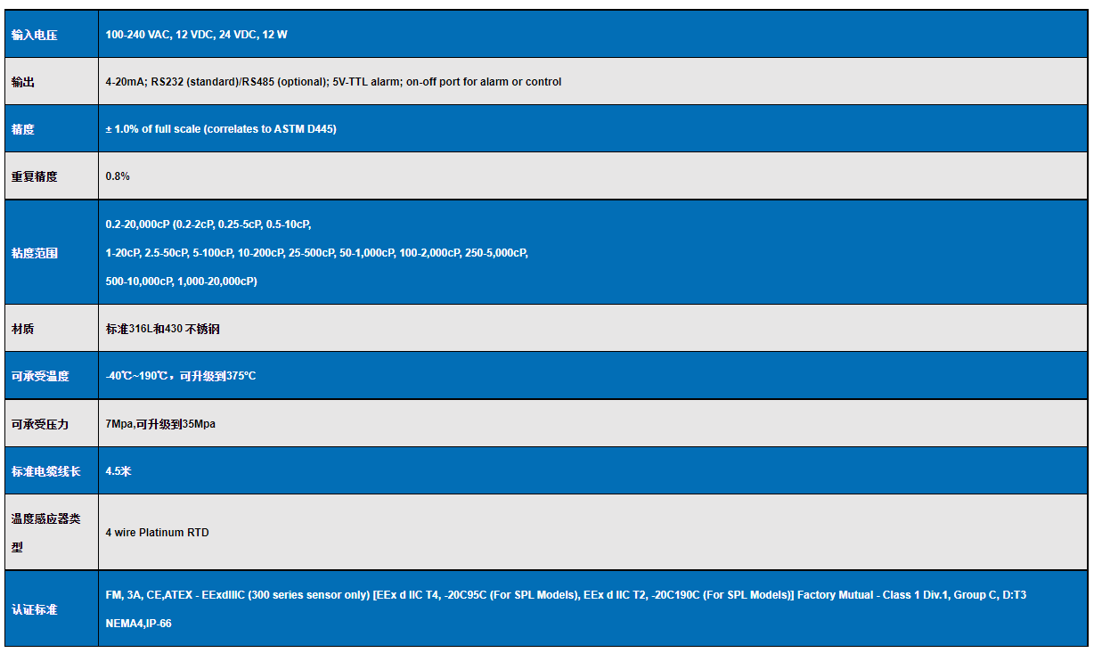 VISCOpro2000 在線粘度計可搭配傳感器: